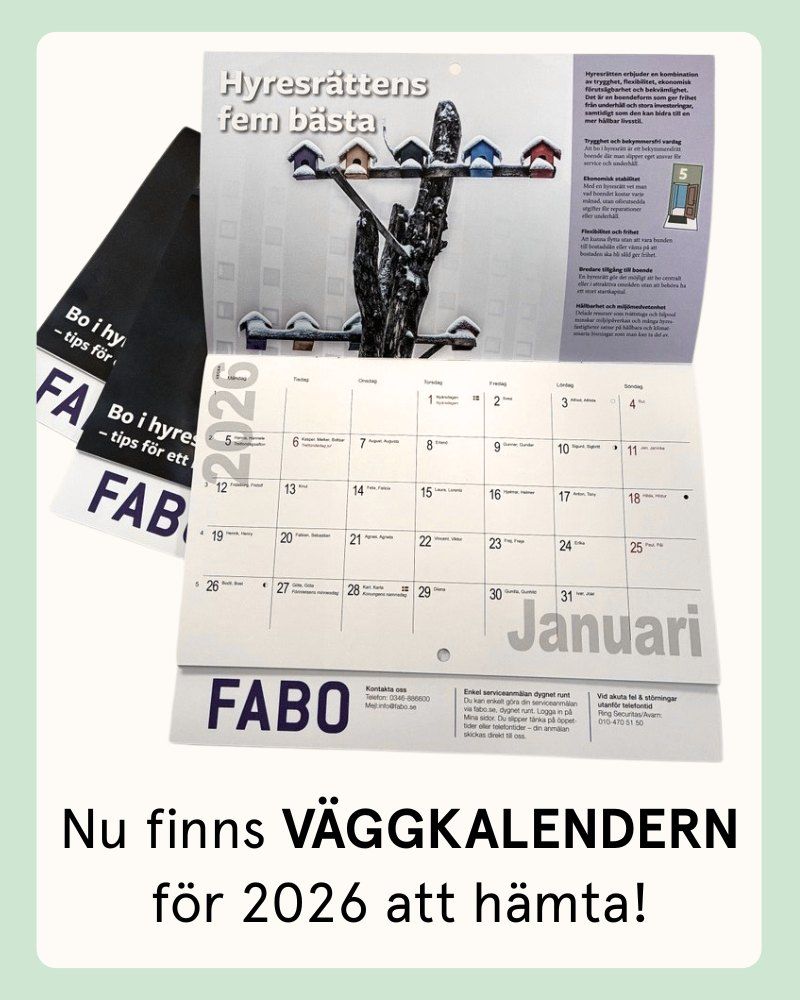 Hyresförhandlingarna mellan Fabo och Hyresgästföreningen inför 2026 är ännu inte klara och Fabo tar nu hjälp av Hyresmarknadskommittén för att komma vidare. Under tiden gäller din nuvarande hyra som vanligt. Vi informerar när beslut om ny hyra är fattat.